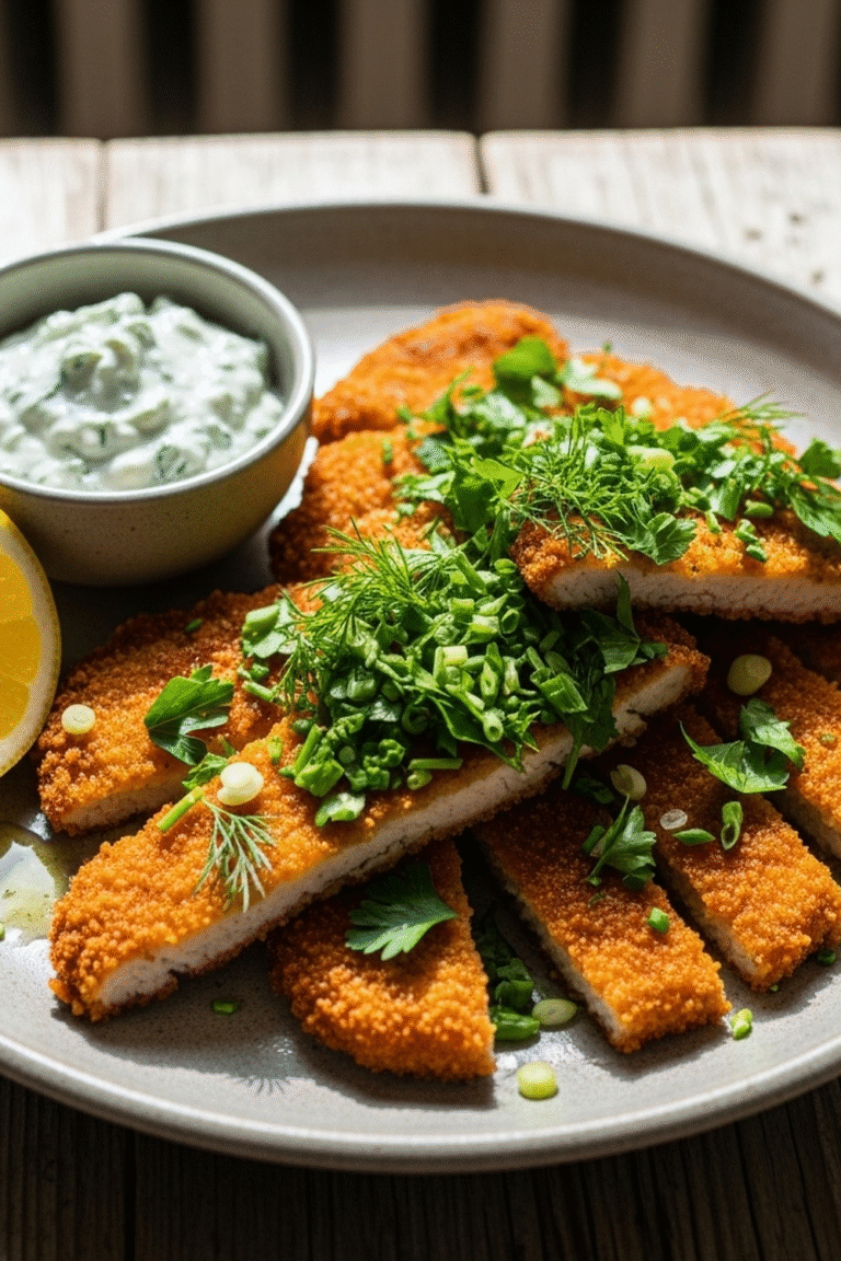 Zu Airfryer Kohlrabi Schnitzel Kräuter passen verschiedene Dips hervorragend. Ein frischer Kräuterquark, ein cremiger Joghurtdip mit Knoblauch oder eine leichte Zitronenmayonnaise sind tolle Optionen. Auch ein scharfer Dip mit Chili oder Sriracha kann einen spannenden Kontrast bieten. Experimentiere einfach mit deinen Lieblingsdips, um die perfekte Ergänzung zu finden.