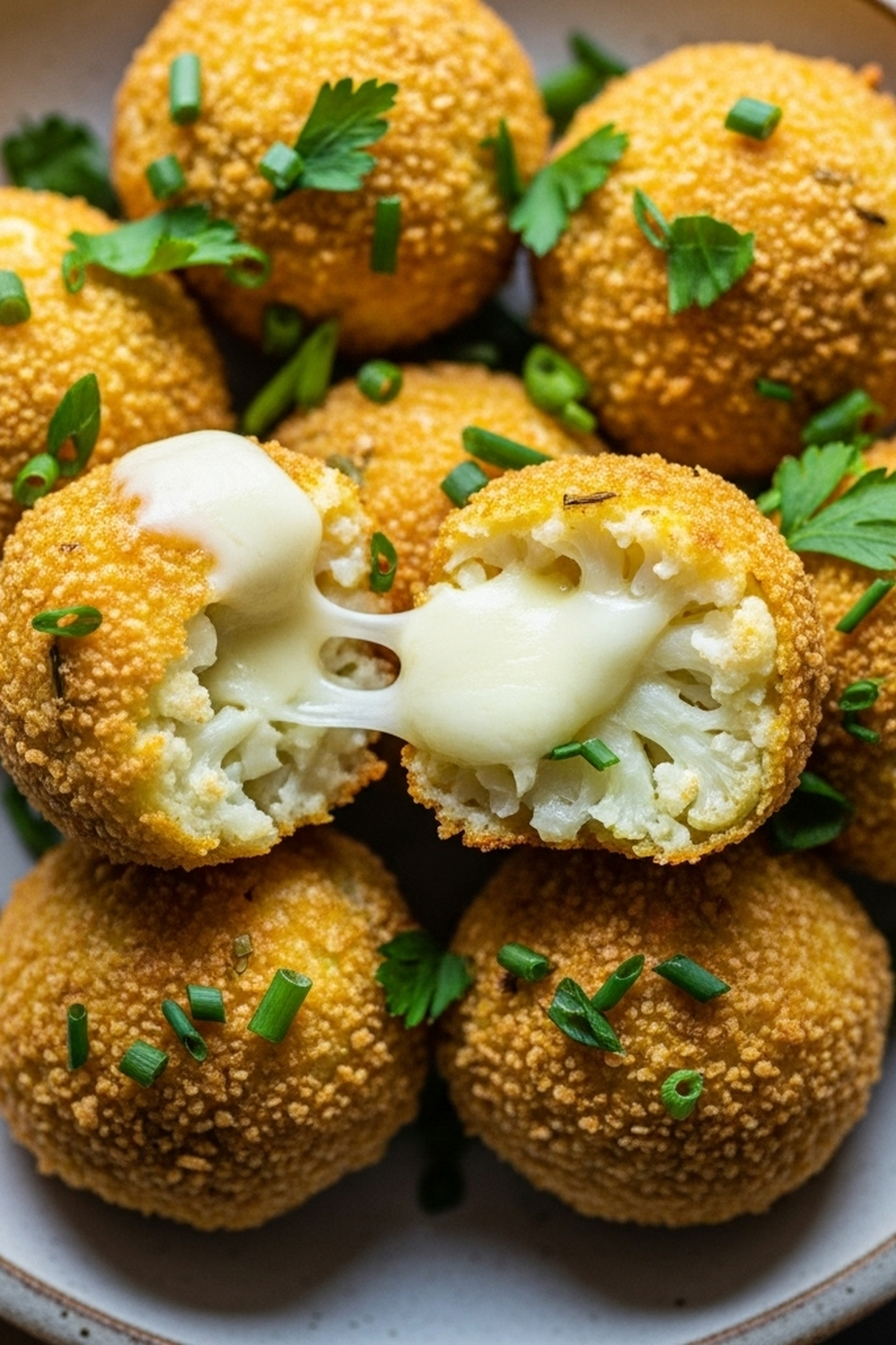 Ein Hauch von geröstetem Blumenkohl, vermischt mit cremiger Mozzarella, ein Hauch Knoblauch und Kräuter, alles vereint in einem kleinen, goldenen Bällchen – ein Fest für die Sinne!