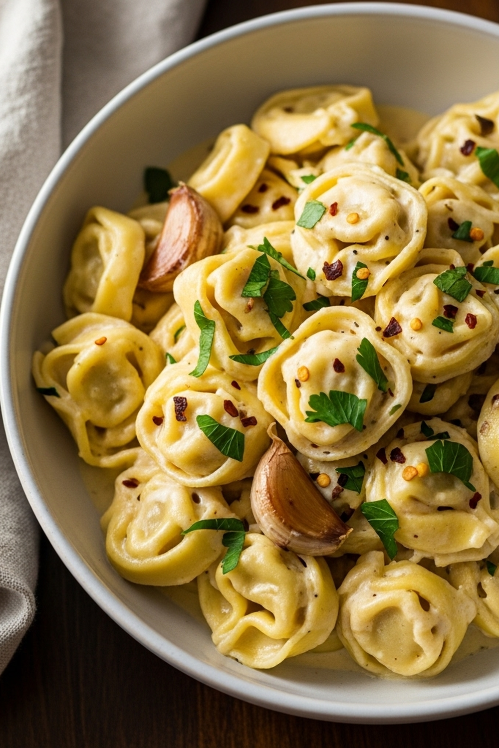Cremige Knoblauch-Parmesan Tortellini für jeden Anlass