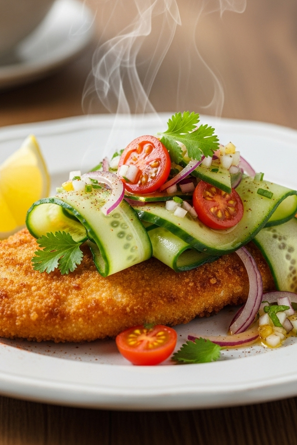 Fisch Milanese mit erfrischendem Gurken-Ceviche: Ein Geschmackserlebnis!