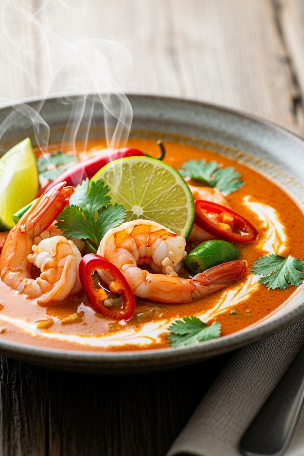 Gesunde & aromatisch scharfe Kokos-Garnelen-Suppe in wenigen Minuten