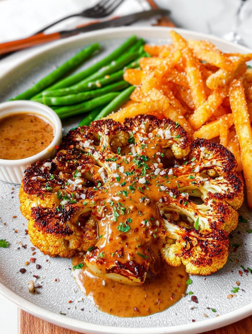 Blumenkohlsteak mit Pfefferrahmsauce