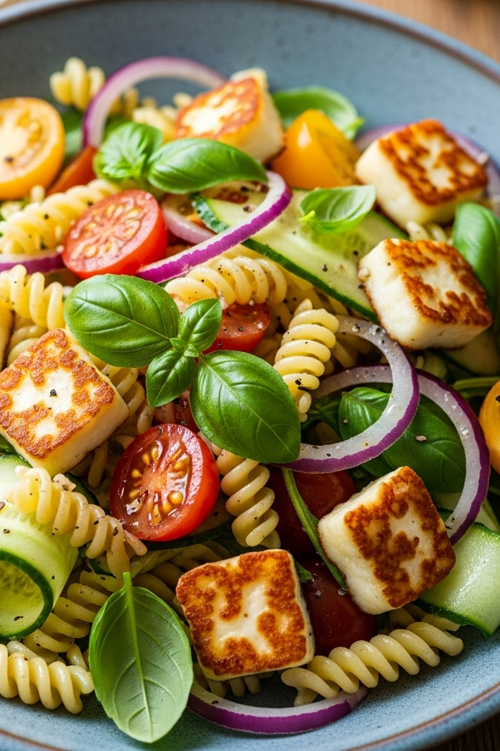 Bunter Halloumi-Nudelsalat