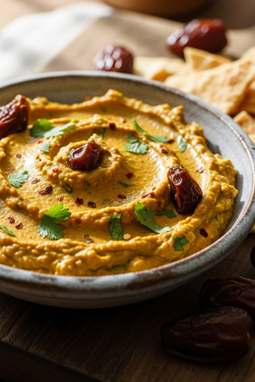 Was diesen Dip so besonders macht, ist seine Fähigkeit, sowohl süße als auch herzhafte Aromen zu vereinen. Die Datteln bringen eine natürliche Süße ein, während Curry und Gewürze für eine angenehme Schärfe und Wärme sorgen. Es ist der perfekte Dip für alle, die nach etwas Besonderem suchen.
