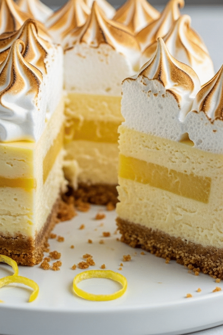Dreifacher Zitronen-Baiser-Käsekuchen