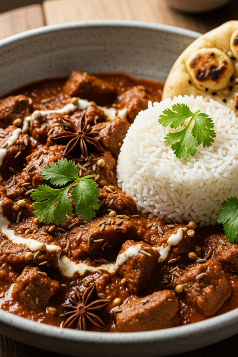 Servieren Sie mit Basmatireis und einem Klecks Joghurt für ein authentisches CurryErlebnis.
