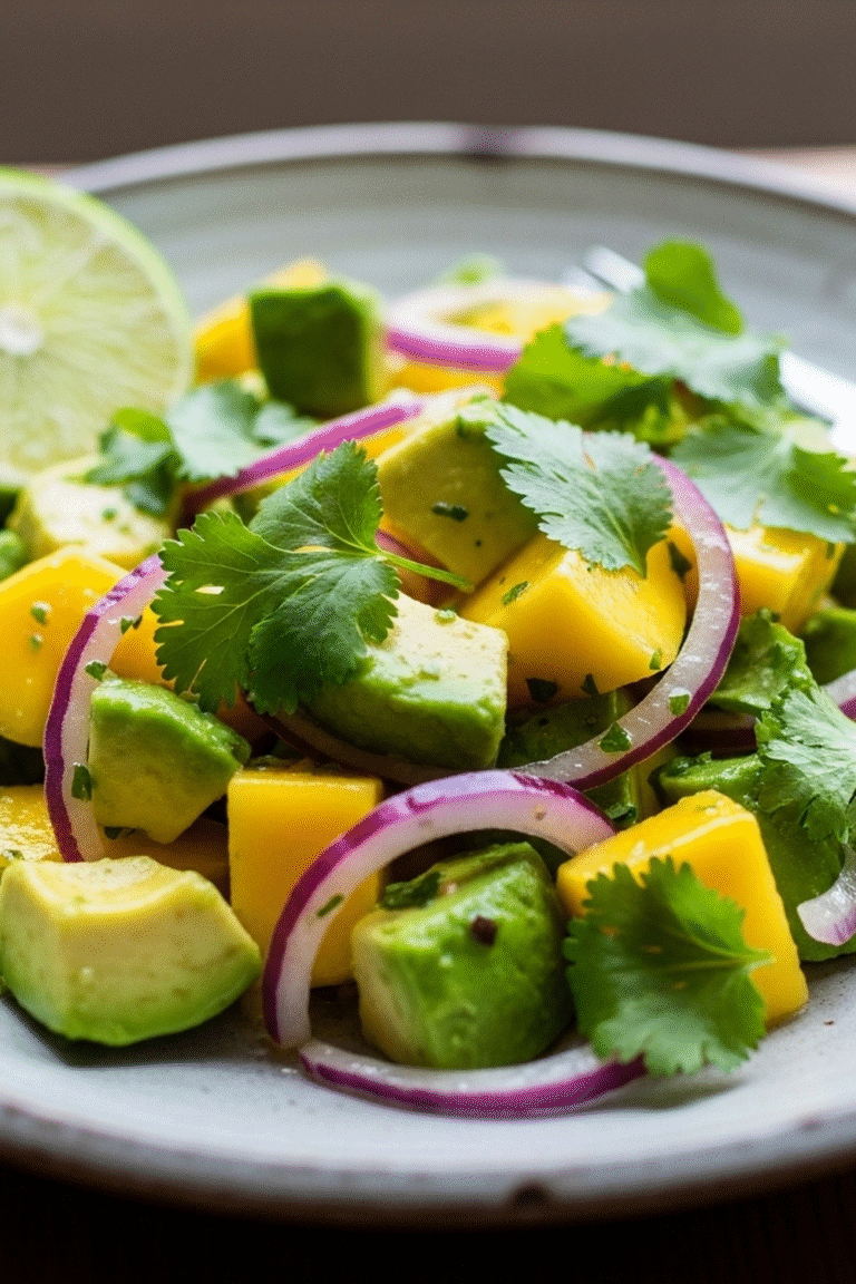 Was diesen Salat so besonders macht, ist die perfekte Balance zwischen süßen, cremigen und würzigen Elementen. Die Kombination aus reifer Avocado, saftiger Mango und einem spritzigen Dressing ist einfach unwiderstehlich.