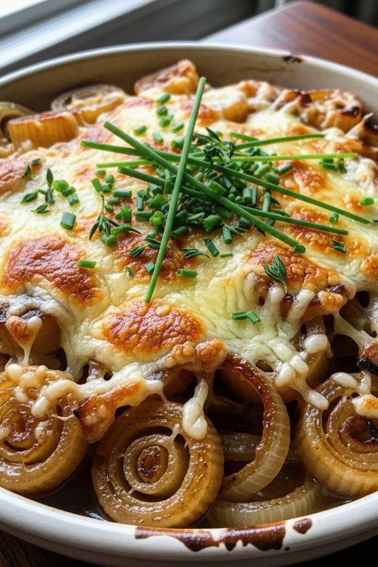 Diese Französische ZwiebelsuppenPasta ist ein herzhaftes, wohltuendes Gericht, das die Wärme einer klassischen Zwiebelsuppe mit der Befriedigung von Pasta kombiniert. Die sanft karamellisierten Zwiebeln sorgen für eine tiefe, süße und leicht würzige Note, die jeden Bissen zu etwas Besonderem macht. Es ist ein einfaches Rezept, das sich perfekt für einen gemütlichen Abend eignet.