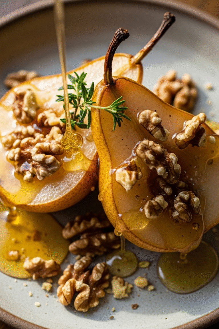 Dieses Rezept für Gebackene Birnen mit Honig und Walnüssen ist ein echtes Highlight für jede Jahreszeit. Die Kombination aus weichen, karamellisierten Birnen, süßem Honig und knusprigen Walnüssen ist einfach unwiderstehlich.