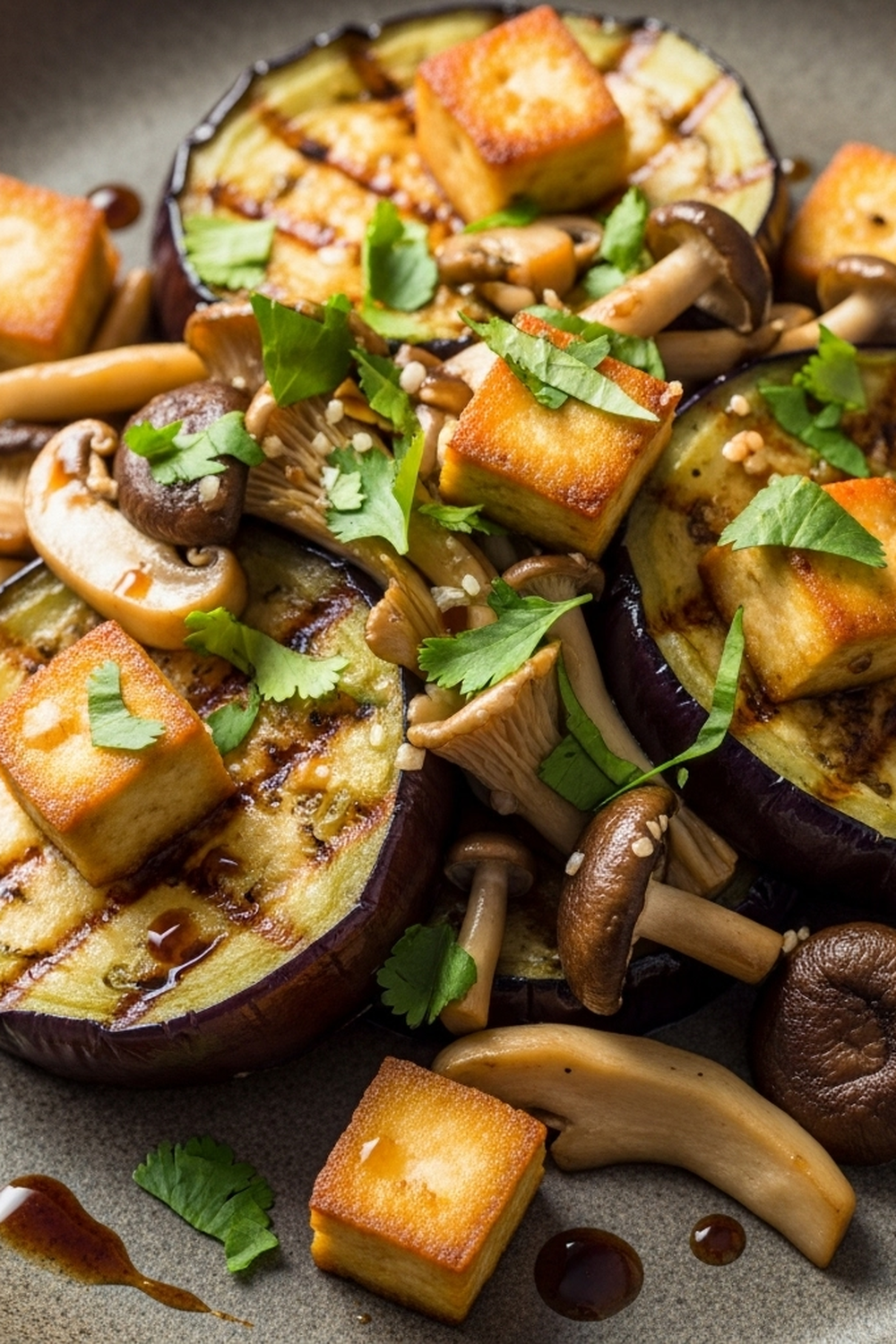 Gebratene Auberginen, Tofu & Pilze