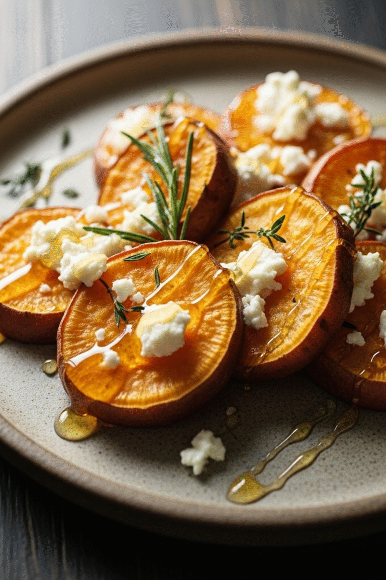 Delicious geröstete süßkartoffelscheiben mit honig und feta recipe with detailed instructions and nutritional information.