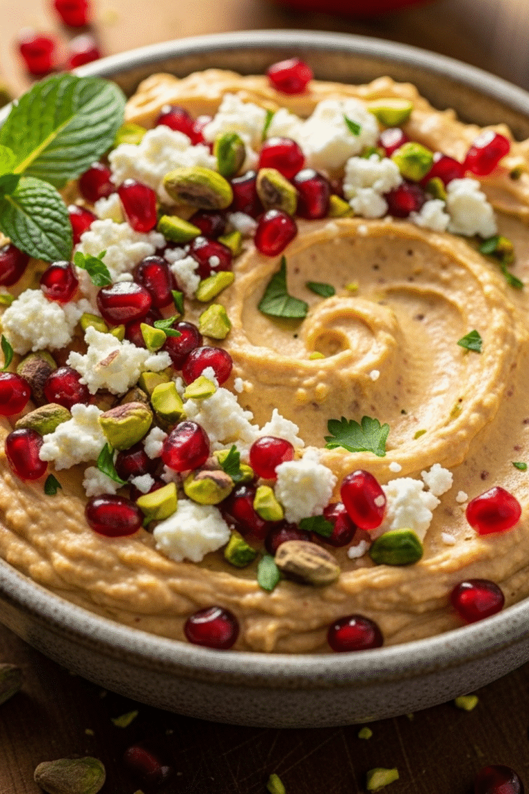 Der GranatapfelPistazienFetaDip eignet sich hervorragend als Vorspeise. Serviere ihn mit warmem Pitabrot, Crackern oder Gemüsesticks. Auch als Teil einer MezzePlatte macht er eine gute Figur.