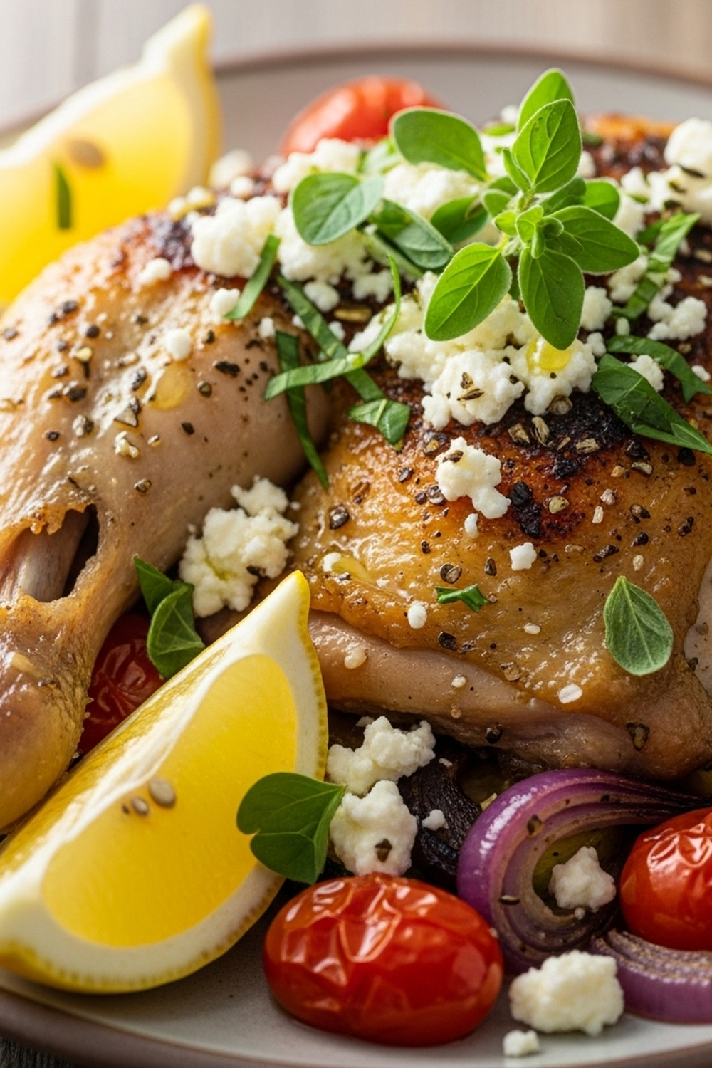 Hier kommt der Duft von sonnengereiften Zitronen, würzigen Kräutern und saftigem Hähnchen zusammen, ein Fest für die Sinne. Die knusprige Haut und der cremige Feta bilden einen unwiderstehlichen Kontrast.