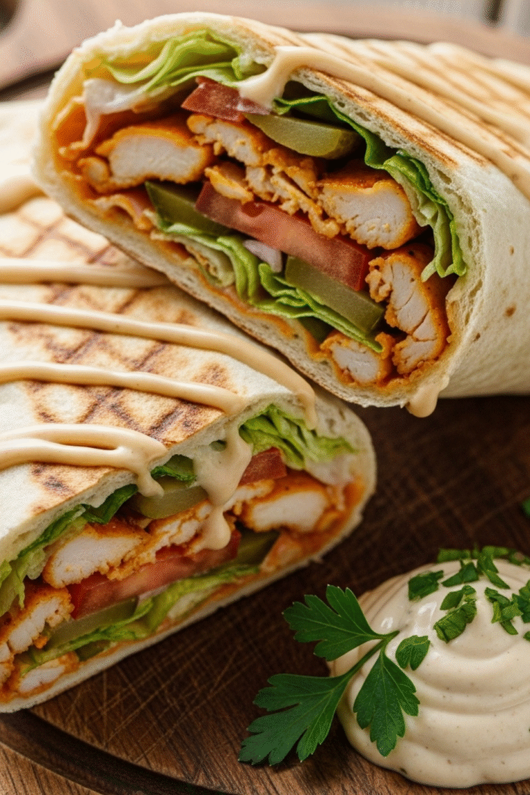 Ihre kulinarische Kreativität kennt keine Grenzen, besonders bei diesem Rezept: Sie können das Hähnchen mit verschiedenen Gewürzen marinieren, wie z.B. geräuchertem Paprika, Kreuzkümmel oder Koriander. Experimentieren Sie mit verschiedenen Gemüsesorten für die Füllung, z. B. eingelegte Gurken, Radieschen oder sogar Pommes frites. Oder tauschen Sie die Knoblauchsauce gegen eine scharfe Sauce, eine TahiniSauce oder eine JoghurtKräuterSauce aus.