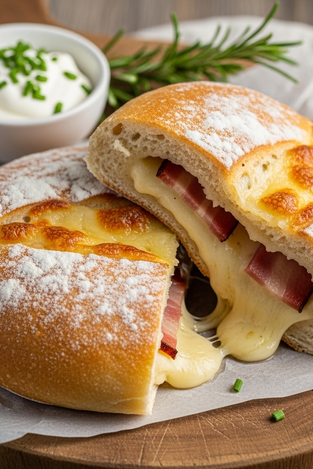 Knuspriges Brot, gefüllt mit herzhaftem Käse und frischen Kräutern, ein Duft, der Erinnerungen an kalte Wintertage und warme Weihnachtsmärkte weckt. Jeder Bissen ist eine Geschmacksexplosion, die sofort glücklich macht.