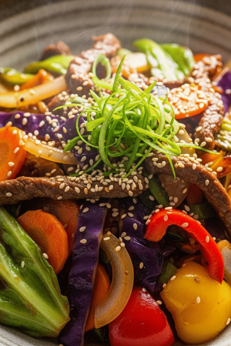 Ein Duft von geröstetem Sesamöl und würzigem Ingwer steigt auf, vermischt mit der erdigen Süße von knackigem Kohl und zarten Rindfleischstreifen. Es ist ein Fest für die Sinne, ein Versprechen von Wärme und Wohlbehagen.