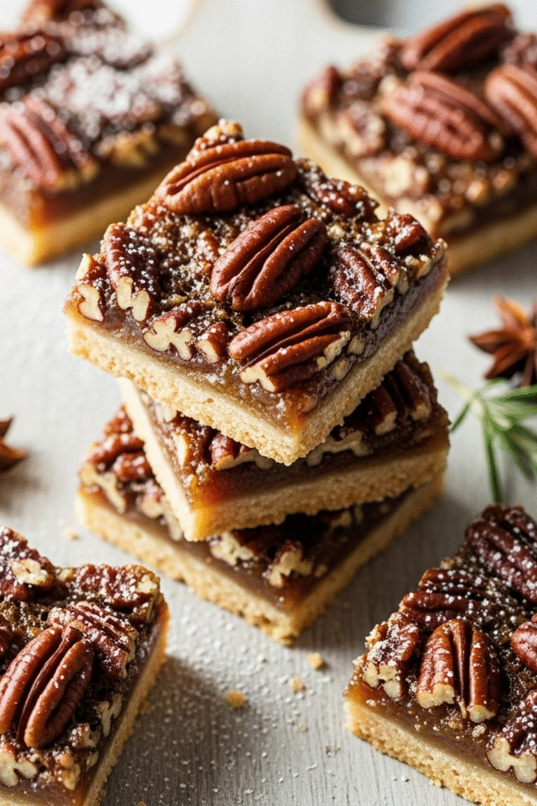 Pekannüsse: Sind der Star des Gerichts und verleihen den Schnitten ihren charakteristischen nussigen Geschmack und Biss.