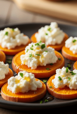 Süßkartoffelscheiben mit cremigem Ziegenkäse