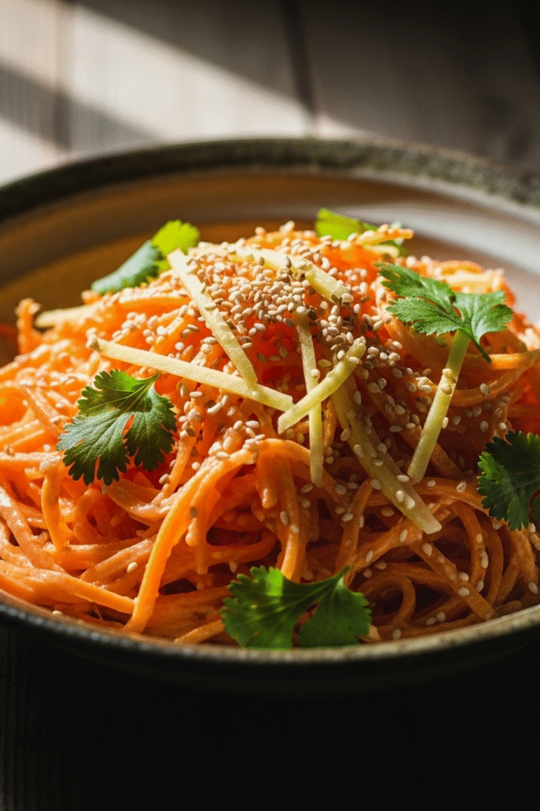 Dieser Karottensalat mit IngwerSesamDressing ist mehr als nur eine Beilage; er ist eine Geschmacksexplosion, die dich überraschen und begeistern wird. Mach ihn noch heute!
