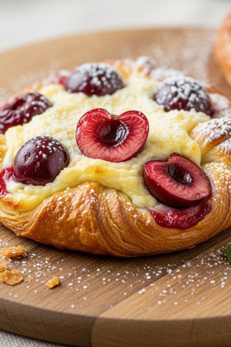 Dieser Kirsche Frischkäse Danish ist mehr als nur ein Gebäck: Ein Genuss für alle Sinne. Die Kombination aus knusprigem Teig, cremiger Frischkäsefüllung und saftigen Kirschen macht ihn unwiderstehlich.