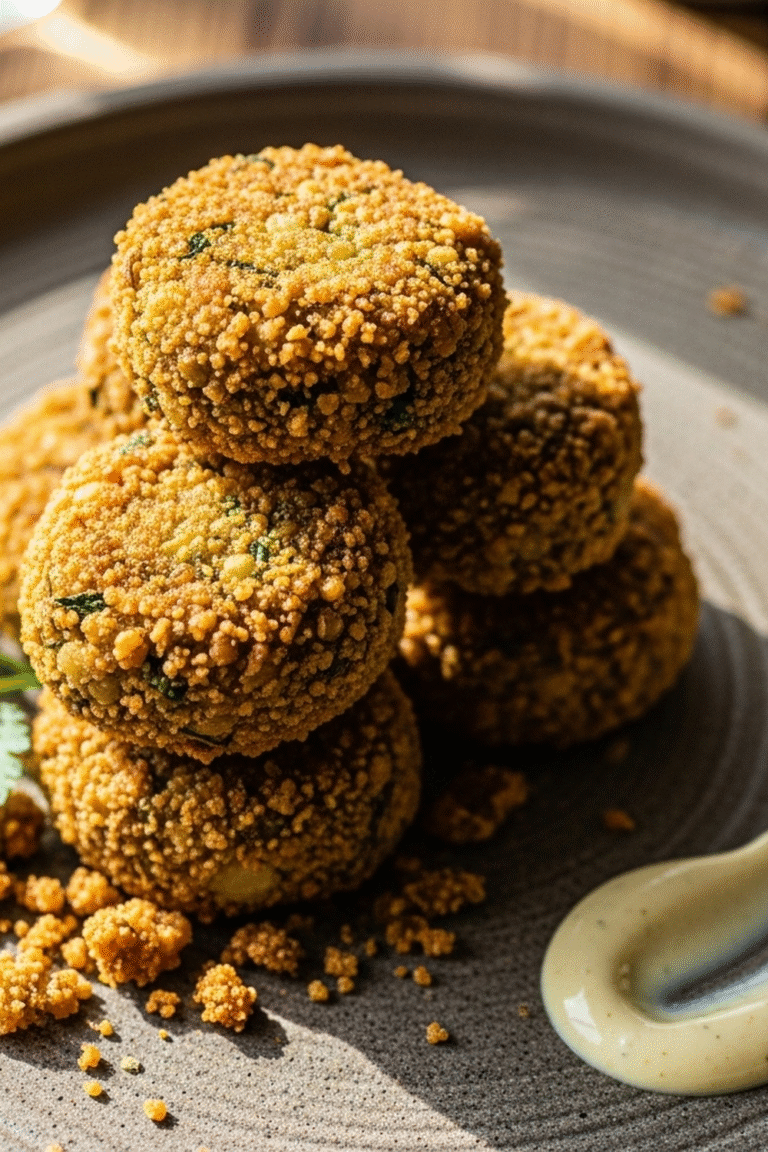 Paniermehl: Für die perfekte Knusprigkeit, eine goldene Hülle um die zarten Linsen.