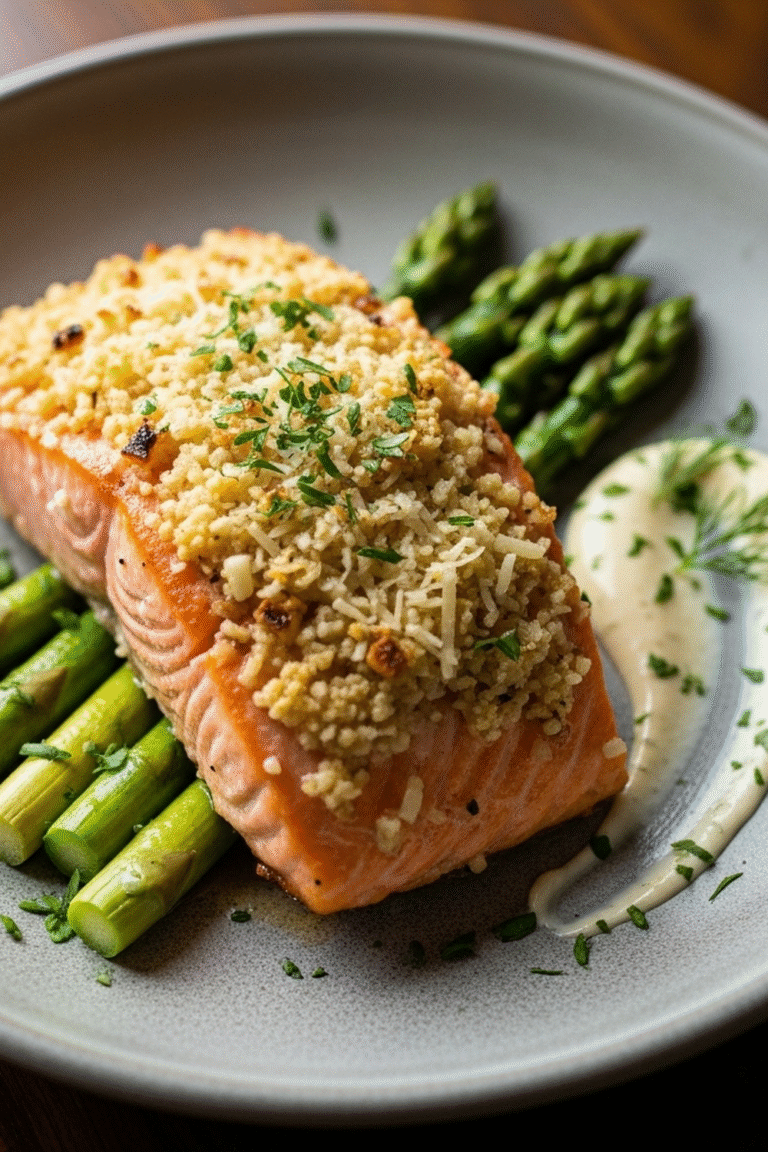 Knuspriger Lachs mit Knoblauch-Parmesan-Kruste genießen