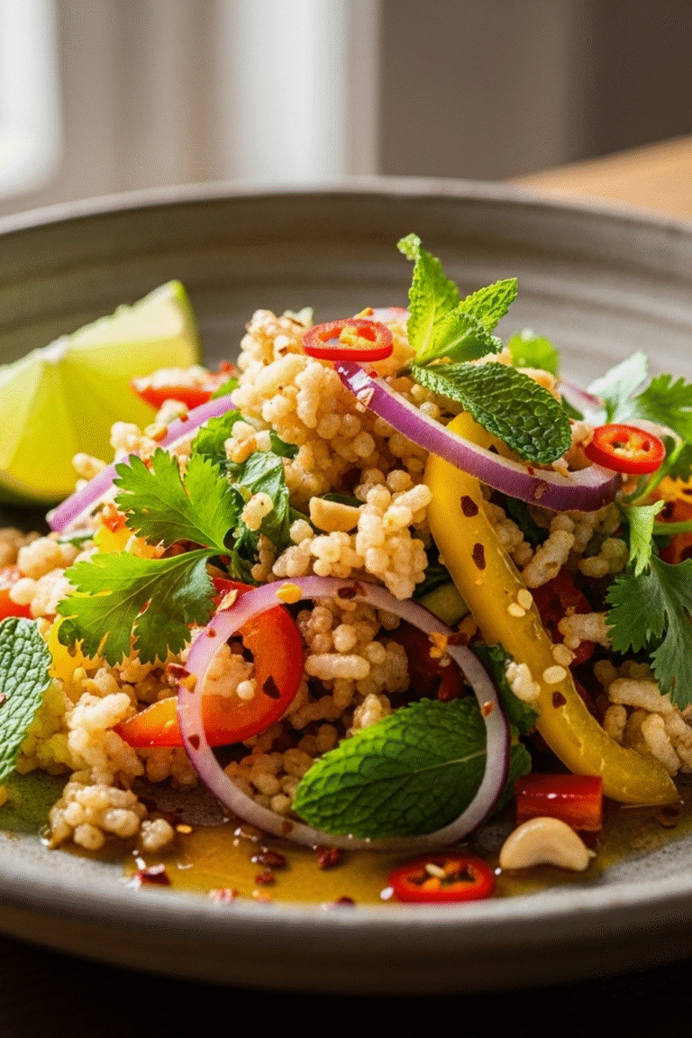 Dieser knusprige Reissalat ist mehr als nur ein Gericht; er ist eine Geschmacksexplosion, die deine Sinne verwöhnt. Die perfekte Kombination aus knusprigem Reis, frischem Gemüse und einer würzigen Sauce macht ihn zu einem unvergesslichen Erlebnis.