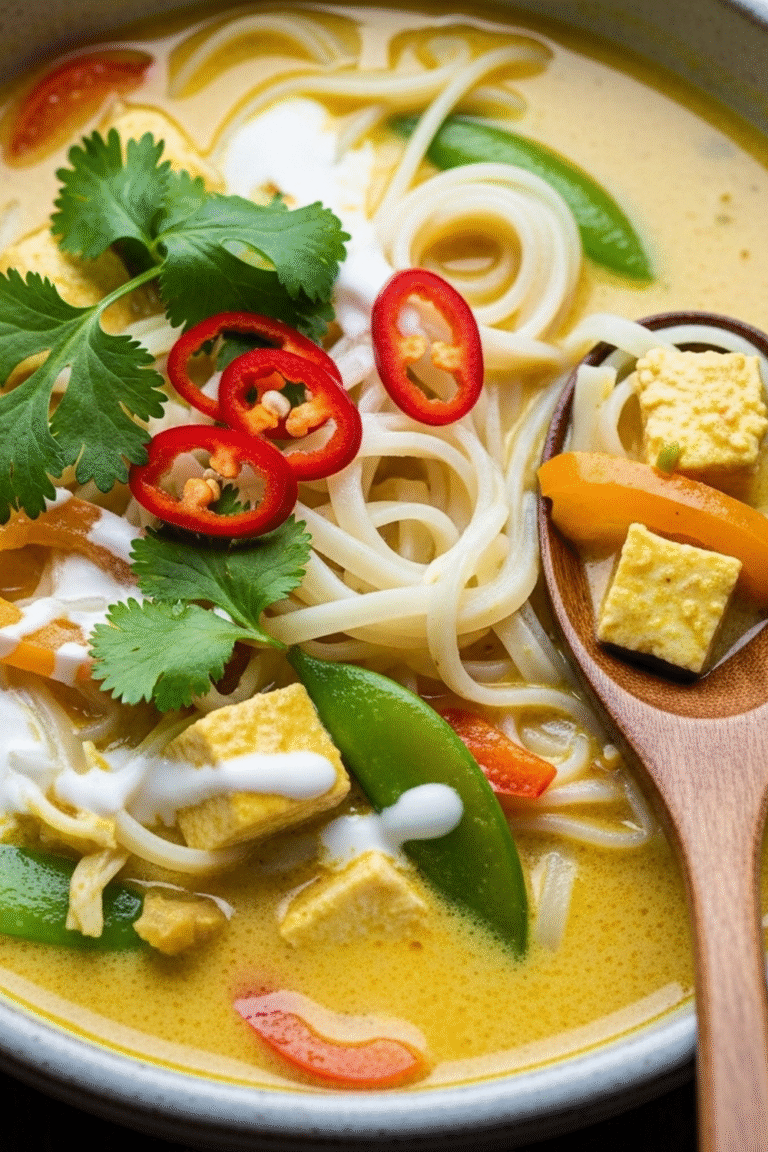 Diese KokosCurrySuppe mit Reisnudeln ist ein echtes AllroundTalent: Sie ist schnell zubereitet, unglaublich lecker und lässt sich wunderbar an die eigenen Vorlieben anpassen. Die cremige Kokosmilch, die aromatischen Gewürze und die zarten Reisnudeln ergeben eine unwiderstehliche Kombination. Ein wahrer Genuss für kalte Tage oder einfach, wenn es mal schnell gehen muss.