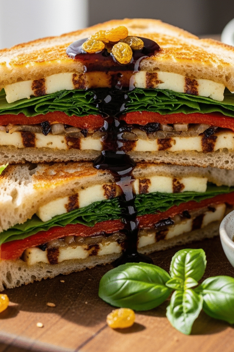 Dieses gegrillte BalsamicoRaisinaigretteSandwich ist mehr als nur eine Mahlzeit; es ist ein kulinarisches Erlebnis. Die Kombination aus süßen Rosinen, würzigem Balsamico und herzhaftem Hähnchen sorgt für ein unvergessliches Geschmackserlebnis.