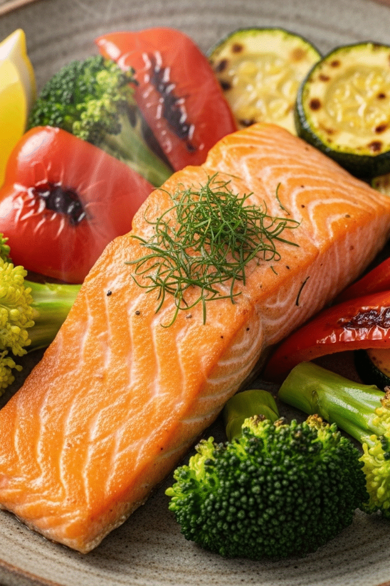 • Serviere den Lachs mit Gemüse auf einem Bett aus Quinoa oder Reis für eine vollwertige Mahlzeit.