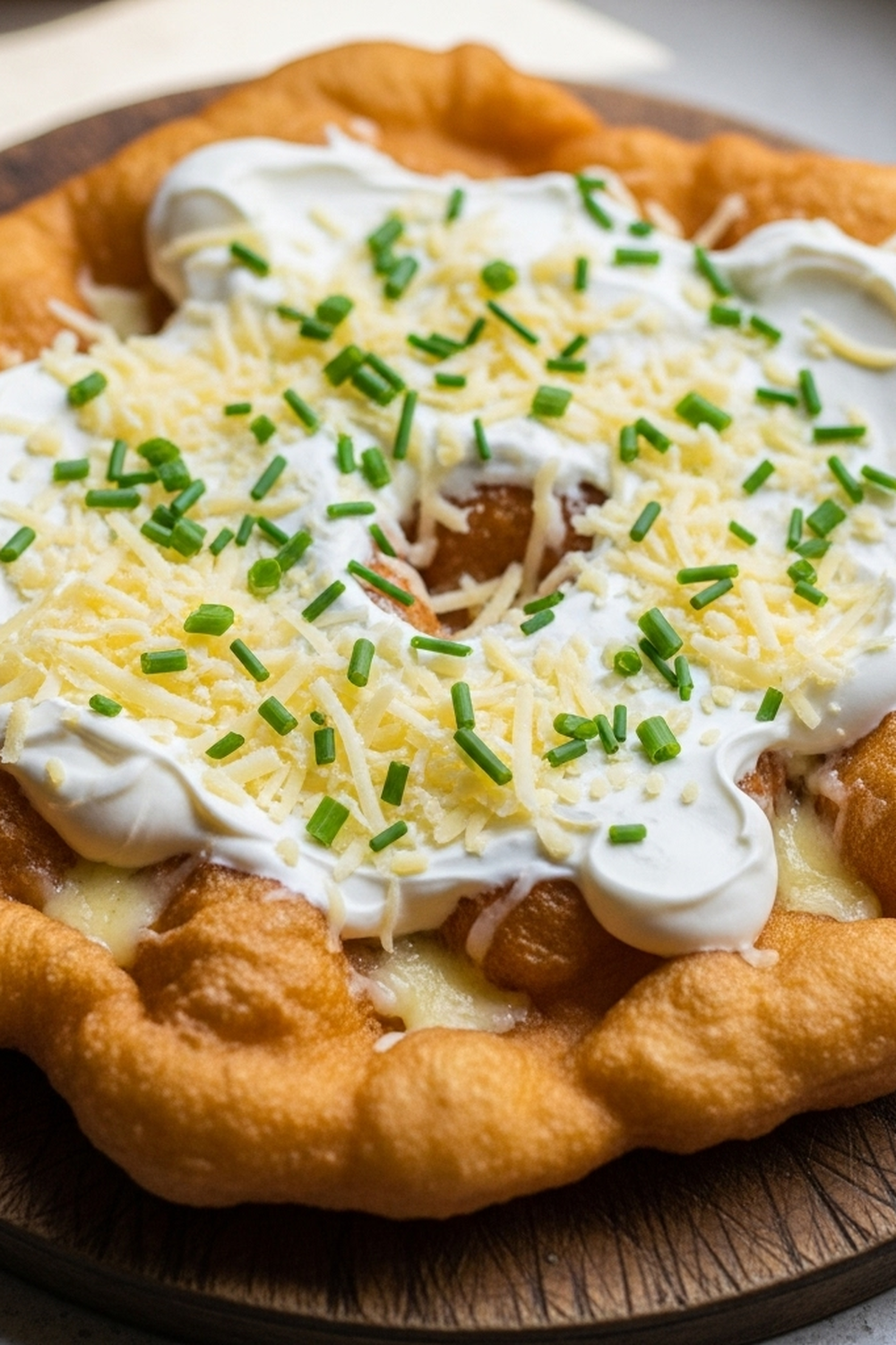 - Step 7: Die fertigen Langos nach Belieben mit saurer Sahne, Knoblauch, Käse oder anderen Zutaten belegen und servieren.