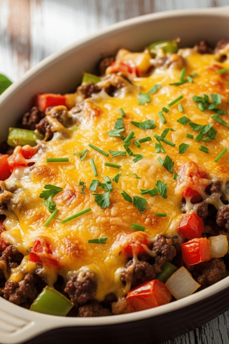 Abendessen / Low Carb Cheeseburger-Auflauf