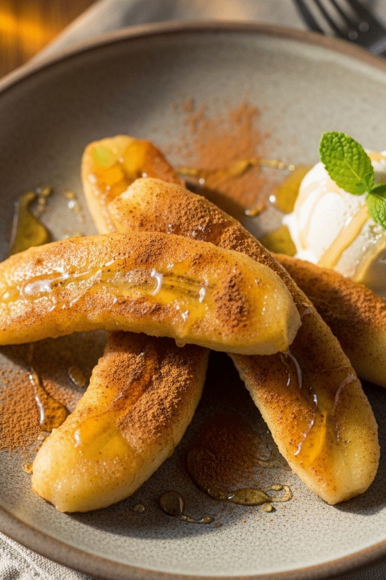 Es ist, als ob die Sonne selbst in Scheiben geschnitten und sanft karamellisiert wurde – luftgegarte Bananen, die süß und aromatisch auf der Zunge zergehen.