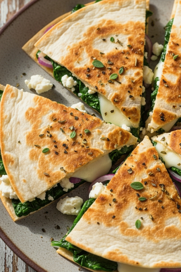 Mediterrane Quesadillas mit Spinat, Feta, Mozzarella und roten Zwiebeln sind mehr als nur ein schnelles Mittagessen. Sie sind eine kulinarische Reise ans Mittelmeer, voller Aromen und Texturen, die dich begeistern werden. Die Zubereitung ist kinderleicht, sodass du im Handumdrehen ein gesundes und leckeres Gericht auf den Tisch zaubern kannst.