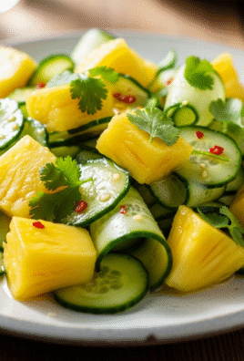 2. Gurkensalat: Ein erfrischender Gurkensalat mit Reisessig, Zucker und Sesamsamen sorgt für eine leichte und knackige Ergänzung zum herzhaften Gericht.
