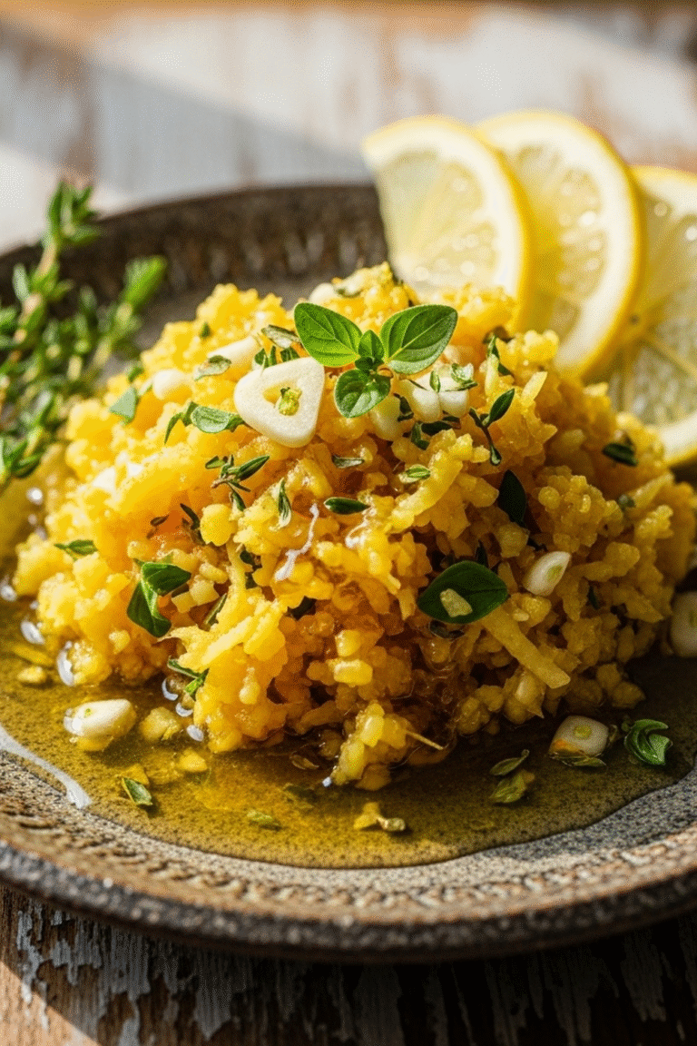 Farbenfroh und ansprechend: Die goldene Farbe und die frischen Zutaten machen dieses Gericht zu einem Hingucker.