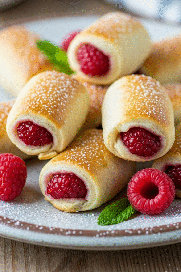 Joghurt: Für eine leichtere Variante kannst du die Röllchen mit griechischem Joghurt servieren.Der Joghurt Einfache Anleitung verleiht dem Dessert eine frische Säure, die gut zu den süßen Himbeeren passt.