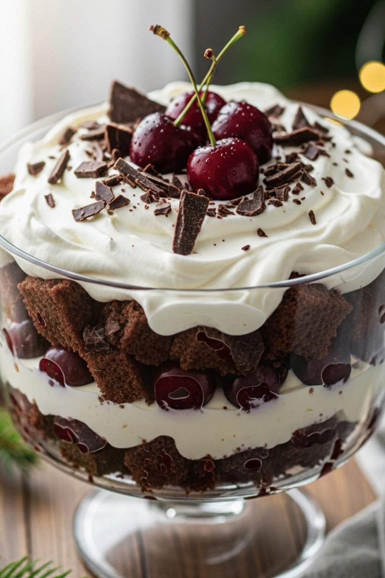 Die Schwarzwälder Trifle für die Winterfeiertage ist das perfekte Dessert, um die festliche Jahreszeit zu versüßen. Die Kombination aus saftigen Kirschen, cremiger Füllung und schokoladigem Biskuit macht sie zu einem unvergesslichen Genuss. Sie ist einfach zuzubereiten, sieht fantastisch aus und schmeckt einfach himmlisch.