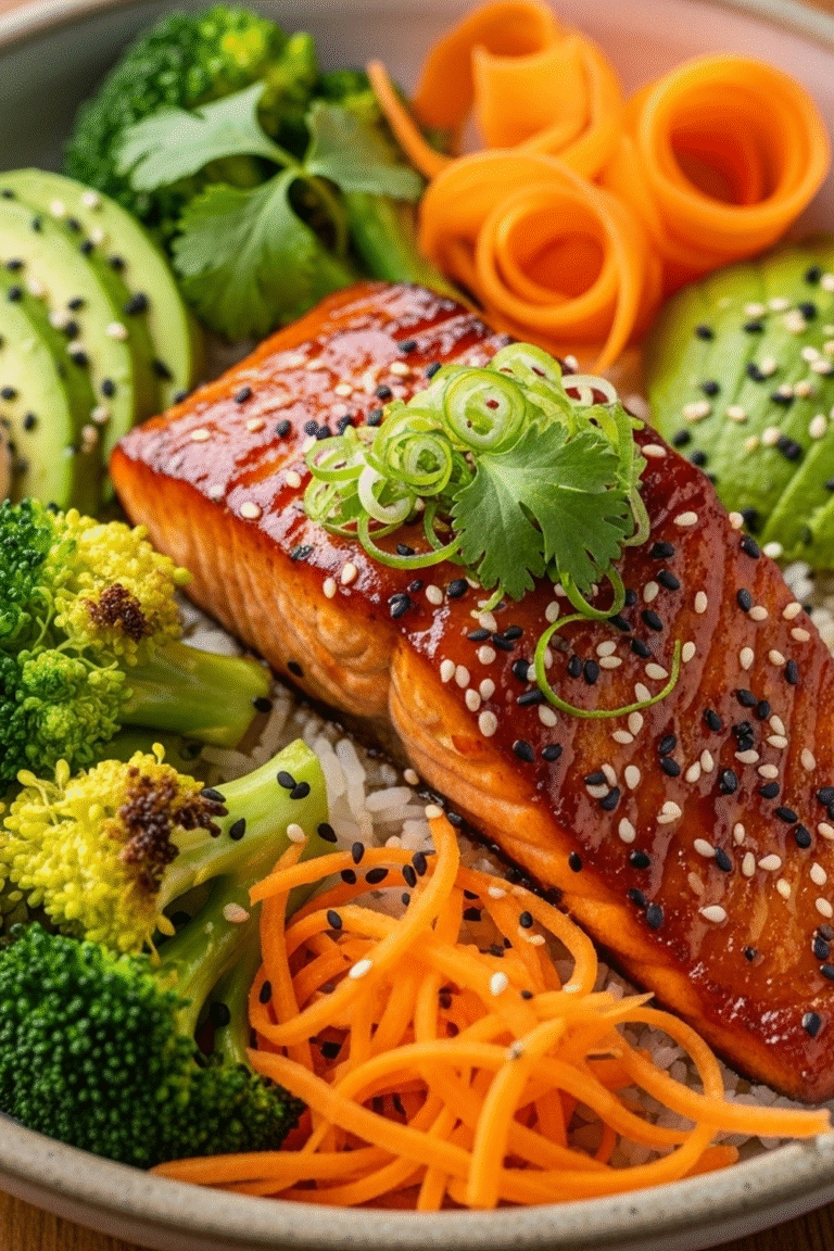 Diese SrirachaHonigLachsBowls sind mehr als nur ein Rezept – sie sind ein kulinarisches Erlebnis, das Sie sich nicht entgehen lassen sollten! Die Kombination aus herzhaftem Lachs, süßem Honig und scharfer Sriracha ist einfach unwiderstehlich. Hinzu kommt die einfache Zubereitung, die dieses Gericht ideal für den hektischen Alltag macht. Sie sind reich an Omega3Fettsäuren, Proteinen und wichtigen Vitaminen, was sie zu einer gesunden und ausgewogenen Mahlzeit macht. Worauf warten Sie noch? Verwöhnen Sie Ihren Gaumen noch heute mit diesen sensationellen SrirachaHonigLachsBowls!
