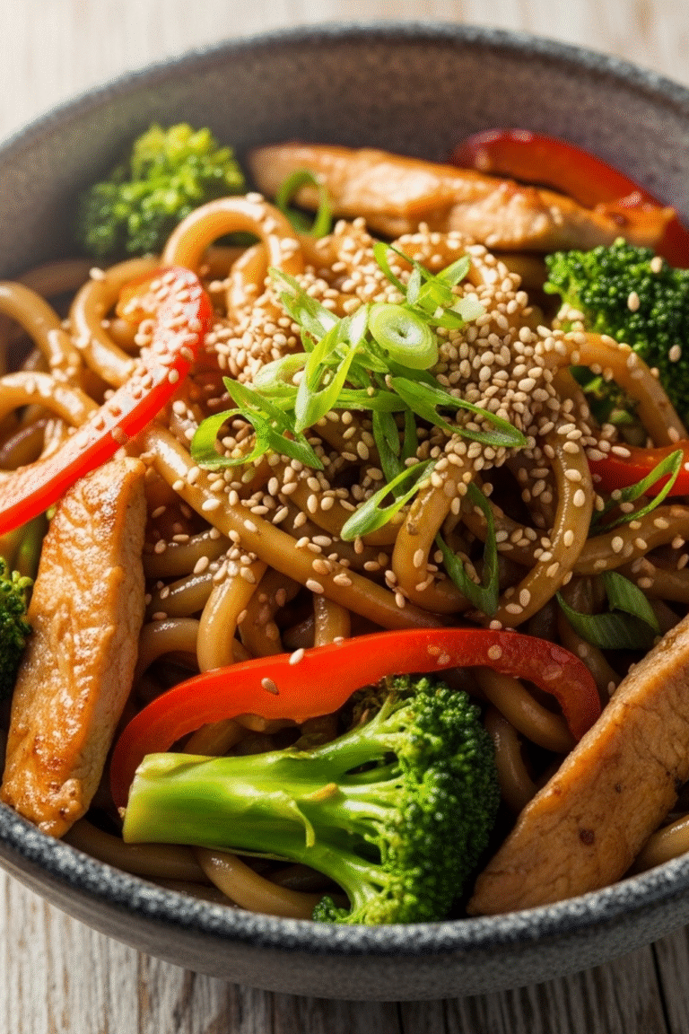 Selbstverständlich! Um eine vegetarische Variante zu erhalten, lasse einfach das Fleisch weg und verwende mehr Gemüse oder füge Tofu hinzu. Für eine vegane Version stelle sicher, dass die Teriyaki Sauce vegan ist (manche enthalten Honig) und verwende pflanzliche Udon Nudeln. Tofu ist eine tolle Ergänzung für eine fleischlose Variante.