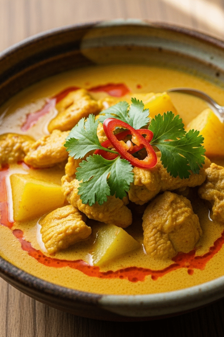 Pair the curry with a refreshing cucumber salad or a light green salad to balance the richness. The crispness and acidity of the salad complement the creamy curry beautifully. Thai Yellow Chicken Curry with Potatoes: