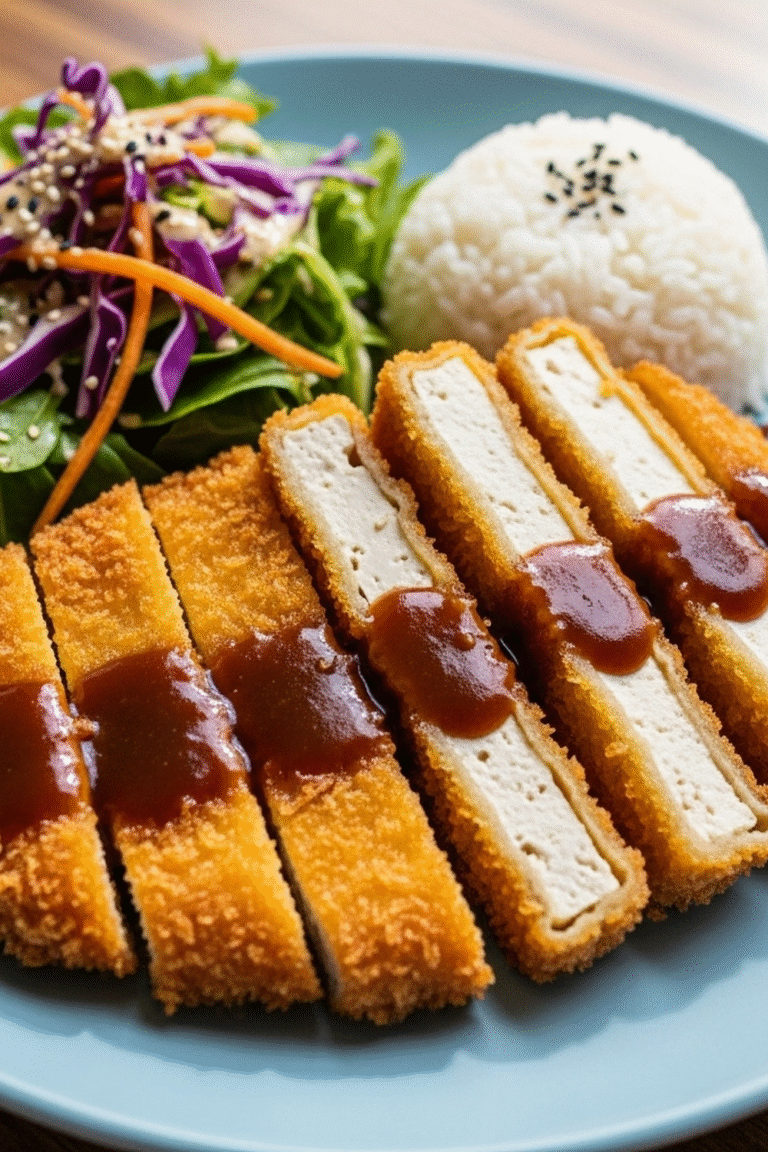 Veganer Tofu Katsu ist eine fantastische Möglichkeit, eine klassische japanische Delikatesse auf pflanzliche Art und Weise zu genießen. Was dieses Rezept so besonders macht, ist die unglaubliche Textur: außen knusprig und innen zart. Außerdem ist es relativ einfach zuzubereiten und lässt sich gut an verschiedene Geschmäcker anpassen.